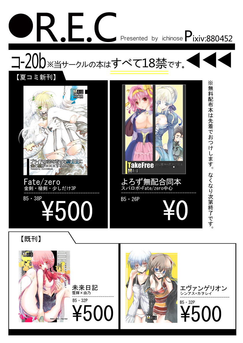 持ち込みした既刊も途中でなくなってしまったのですがEVAはとらのあなさんに、未来日記は少しだけ手元にあるので置く場所があれば冬に持込したいです。