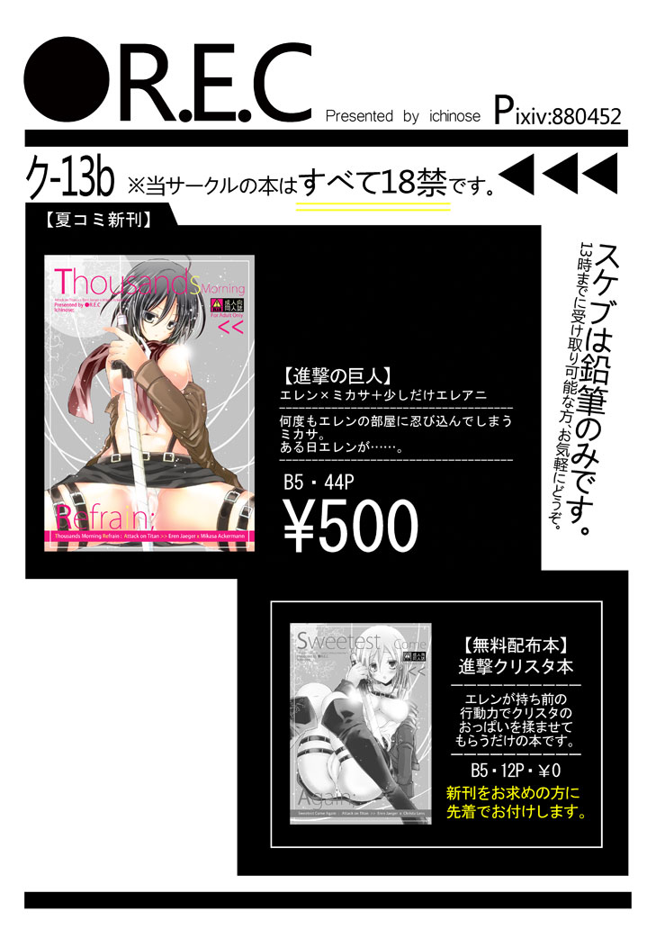 遅くなりましたが進撃オンリーに参加された方々お疲れ様でした。